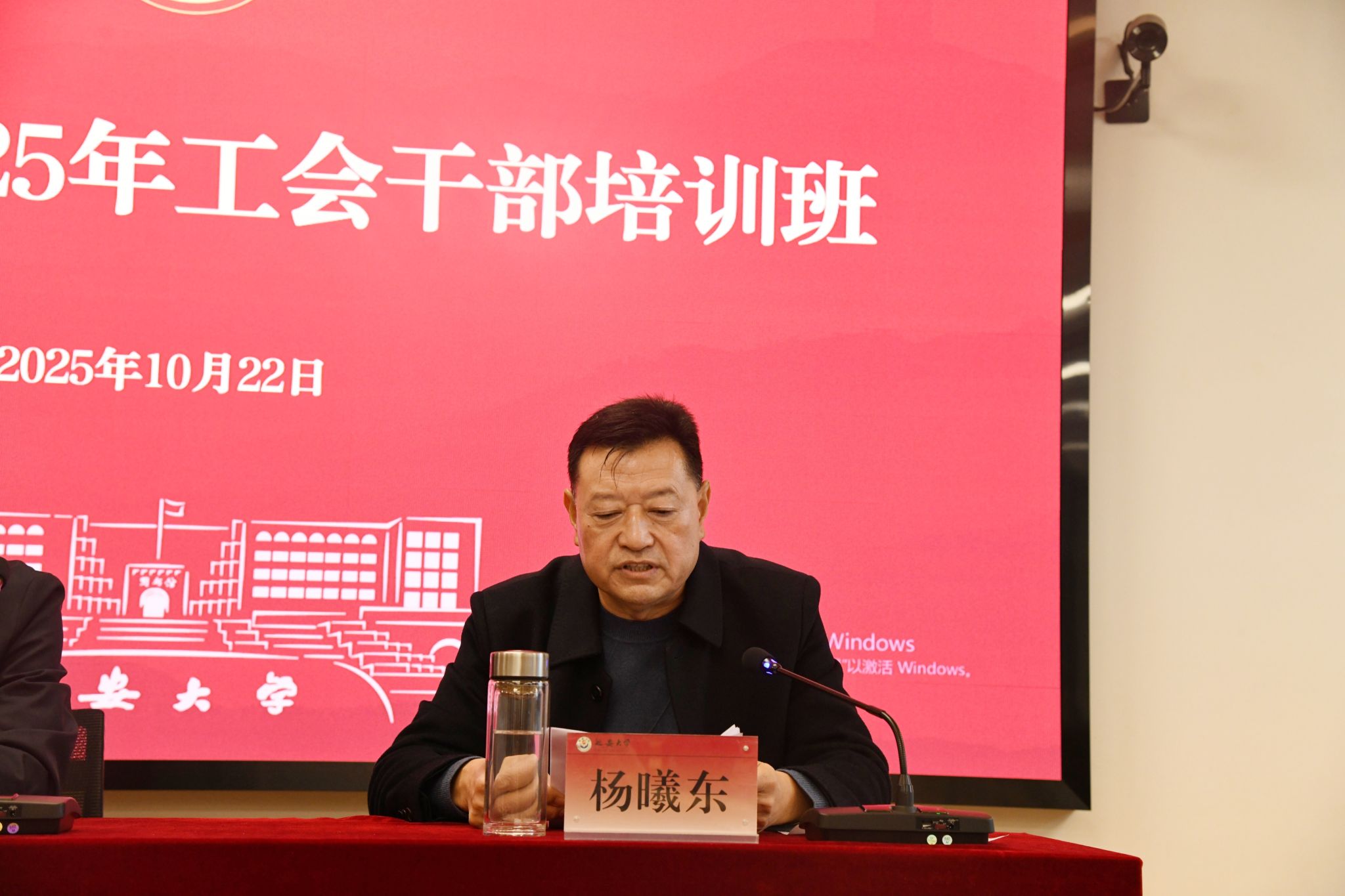 中国工会第十七次全国代表大会代表、校工会原主席白泽生教授出席了开班仪式,校工会主席杨曦东在开班仪式上作了动员讲话。开班仪式由校工会副主席张永东主持。