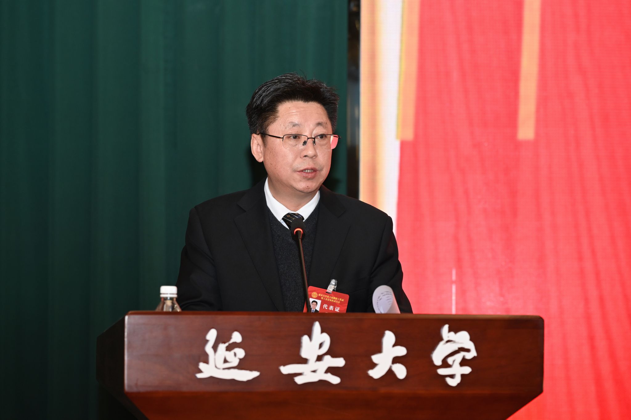 校工会主席杨曦东作了题为《赓续百年工运荣光 凝聚改革发展力量 奋力谱写延大高质量发展新篇章》的工会工作报告。报告系统总结了2025年校工会主要工作,提出了2026年主要工作任务和思路。