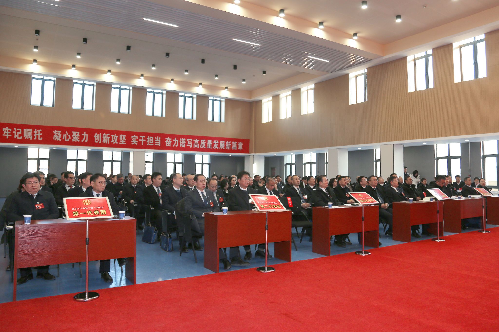 本网讯1月16日下午,我校第六届教职工代表暨工会会员代表大会第二次会议在新城校区五四报告厅举行。校领导高子伟、奚家米、杨伟宏、王占金、吕达、谭虎娃、王延峰、李杨、吕磊及大会主席团成员出席开幕式。来自全校各单位的210名正式代表、特邀代表与列席代表肩负广大教职工的重托齐聚一堂,共商学校高质量发展大计。开幕式由大会秘书长、校党委副书记吕达主持。