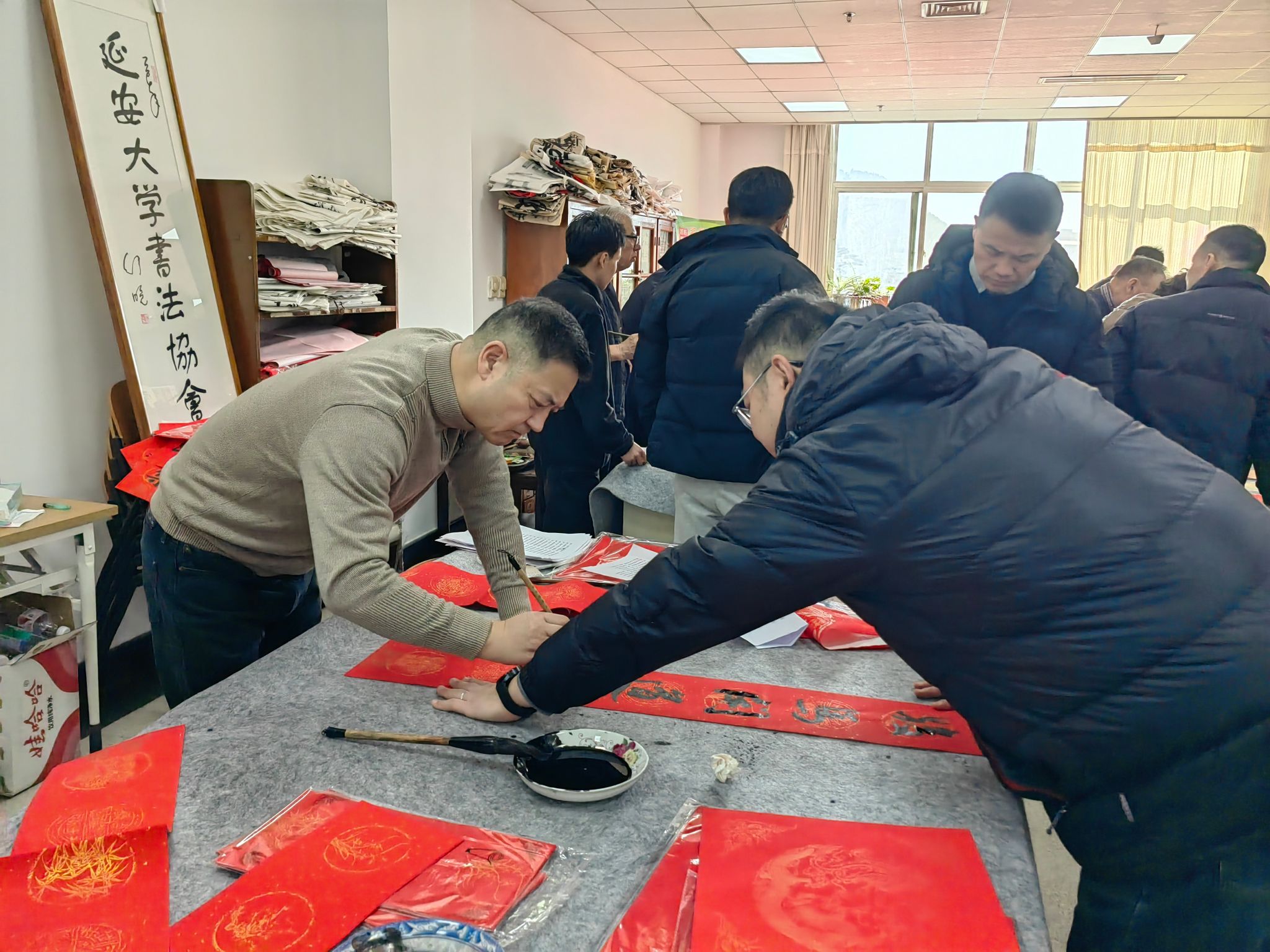 本网讯 2月7日上午,校工会与教职工书画协会在杨家岭校区图书馆五楼毛笔字实训室成功举办“万福迎春”送春联送祝福活动,为广大教职工送上新春的祝福。